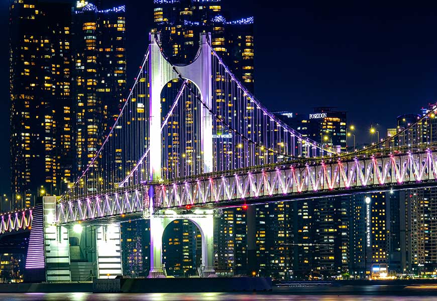 광안대교가 불빛으로 빛나는 모습은 정말 아름다웠어요.